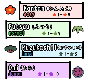 follow the pattern below are generally very difficult (as in, above 鬼 (Oni) うら鬼 (Inner Oni)).