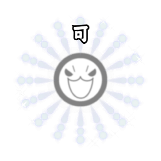 良 (Good) awards full points, 可 (Ok) awards half points, and 下可 (Bad) awards no points plus resets your combo.